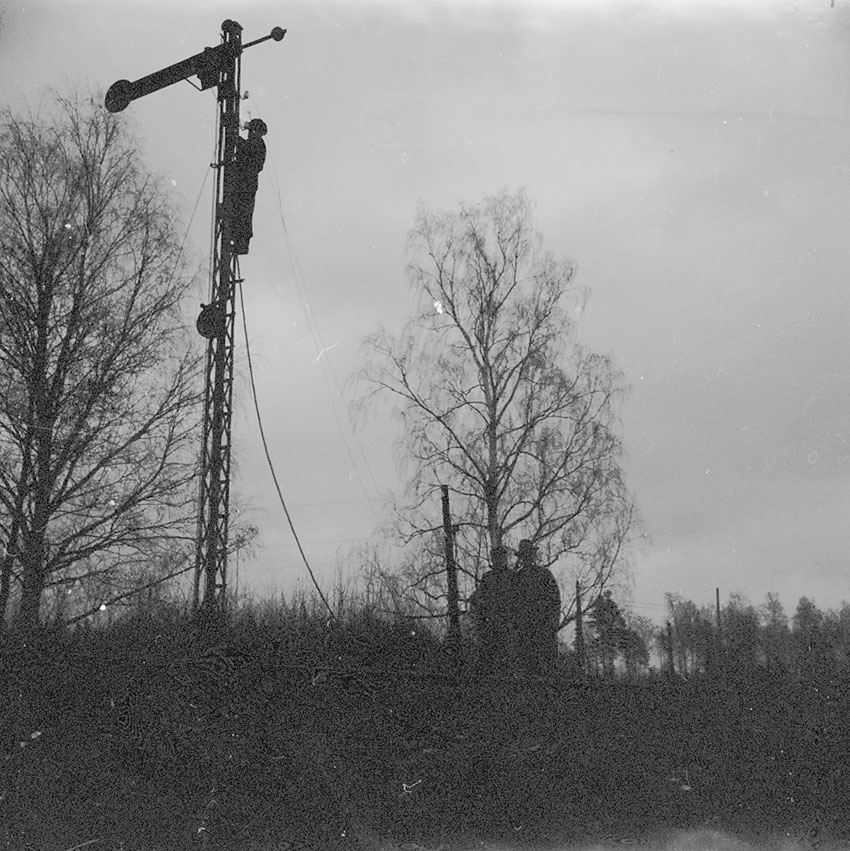 En man står uppe på en semfor och arbetar.