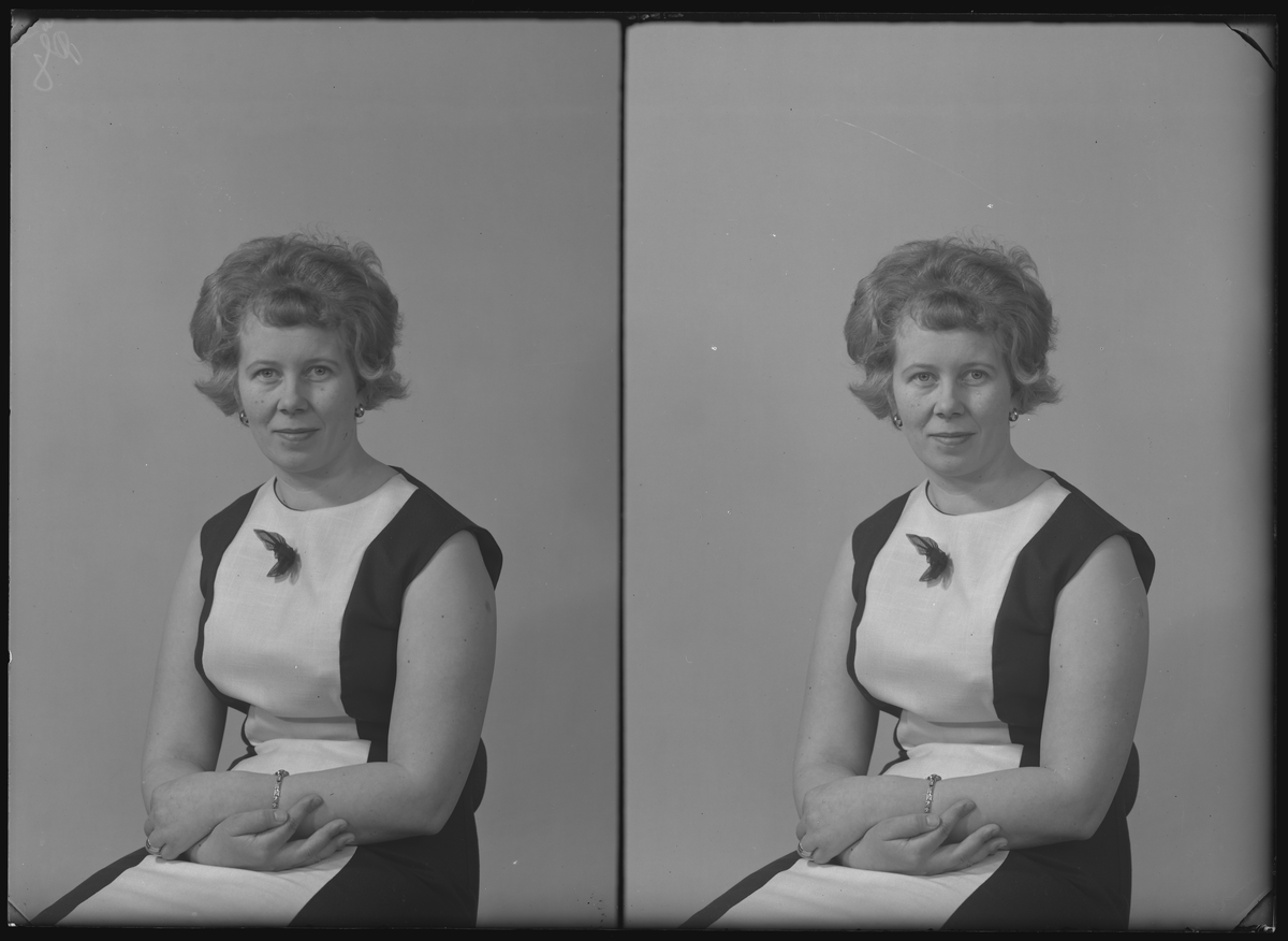 Kvinnoporträtt, körfoto. Seija Kiiskilä. Ringvägen 14, Kolbäck. Ur Gustaf Åhmans samling.