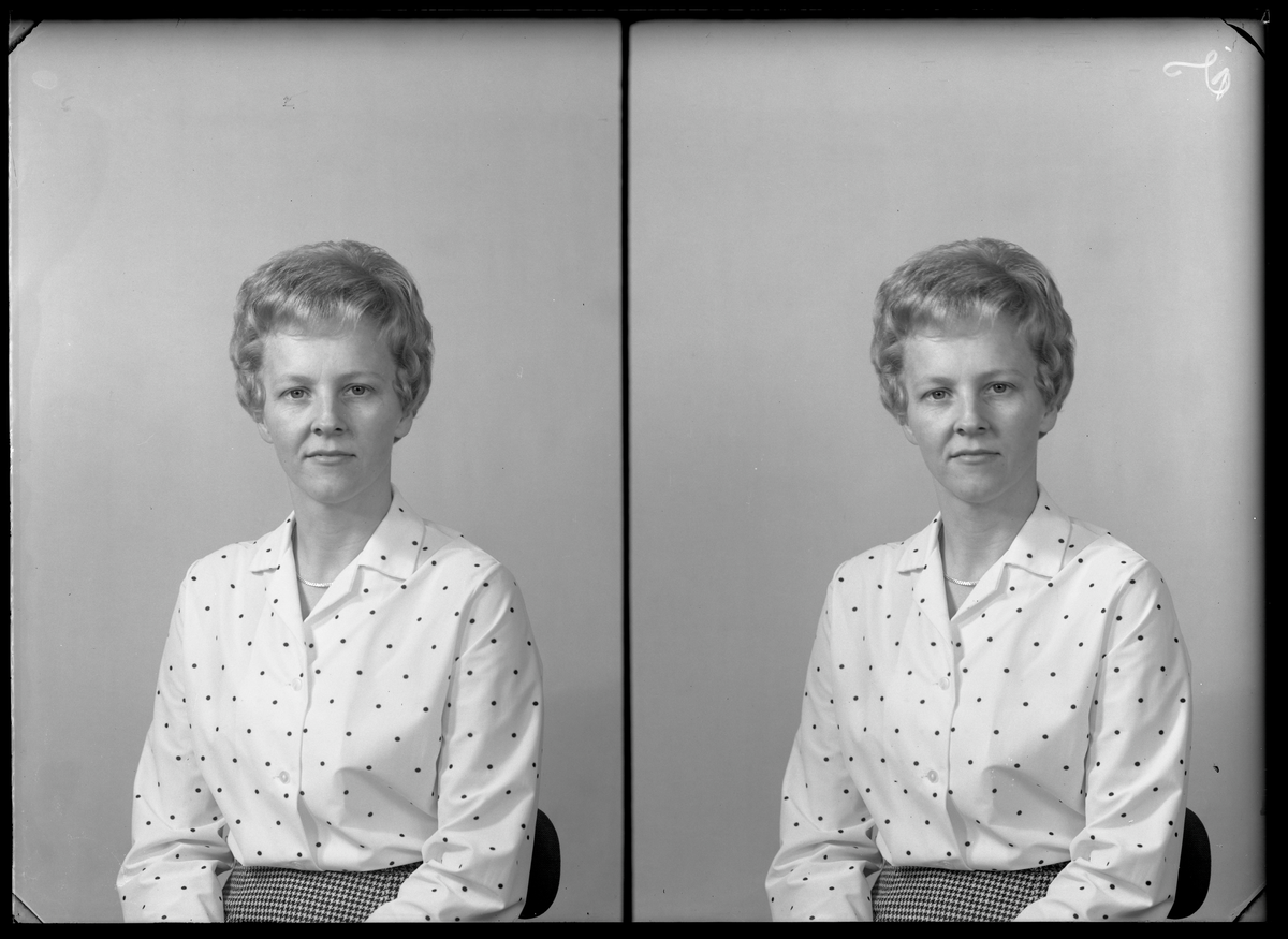 Kvinnoporträtt, körfoto. Fru Sonja Jansson, Hagvägen 12A, Kolbäck.