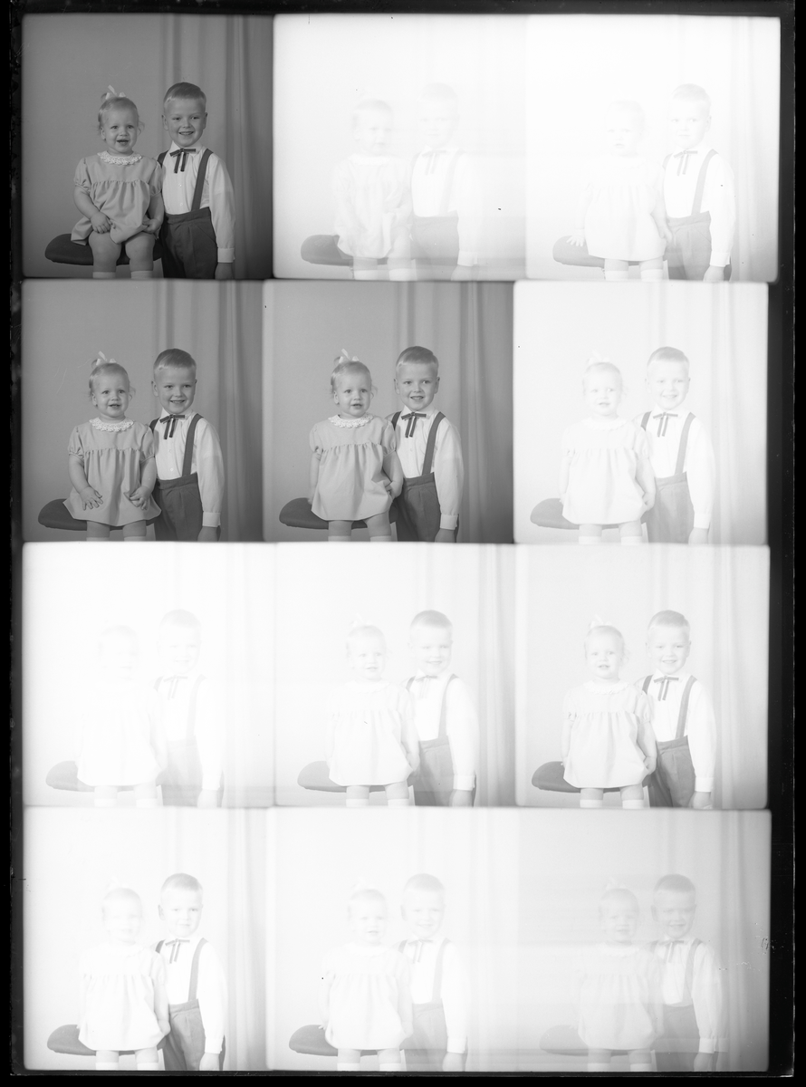 Titel: Grupporträtt, två barn. Ingemar Eriksson, Västhamra, Munktorp. Ur Gustaf Åhmans samling.