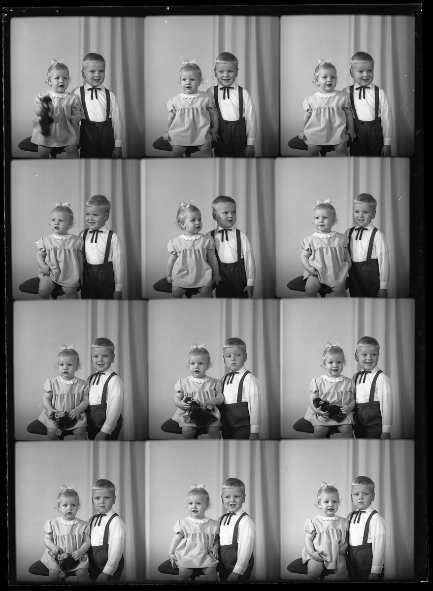 Grupporträtt, två barn. Ingemar Eriksson, Västhamra, Munktorp.