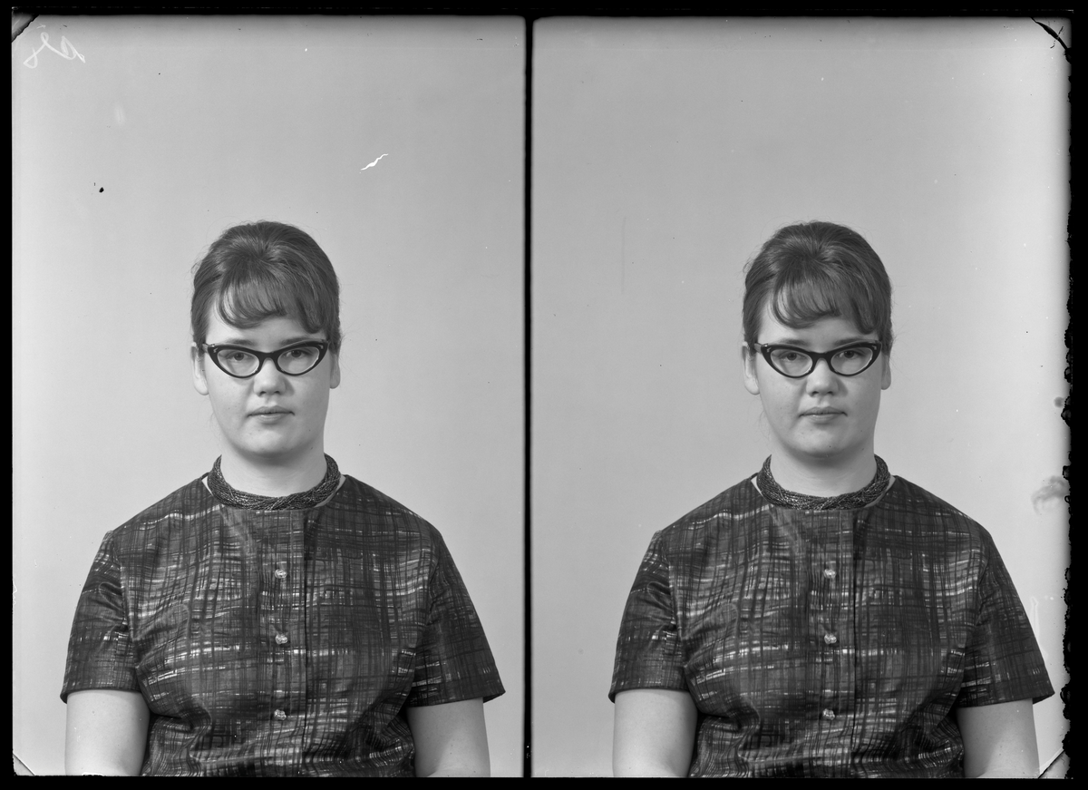Kvinnoporträtt, pass. Solveig Larsson, Hallstavägen 8, Kolbäck.