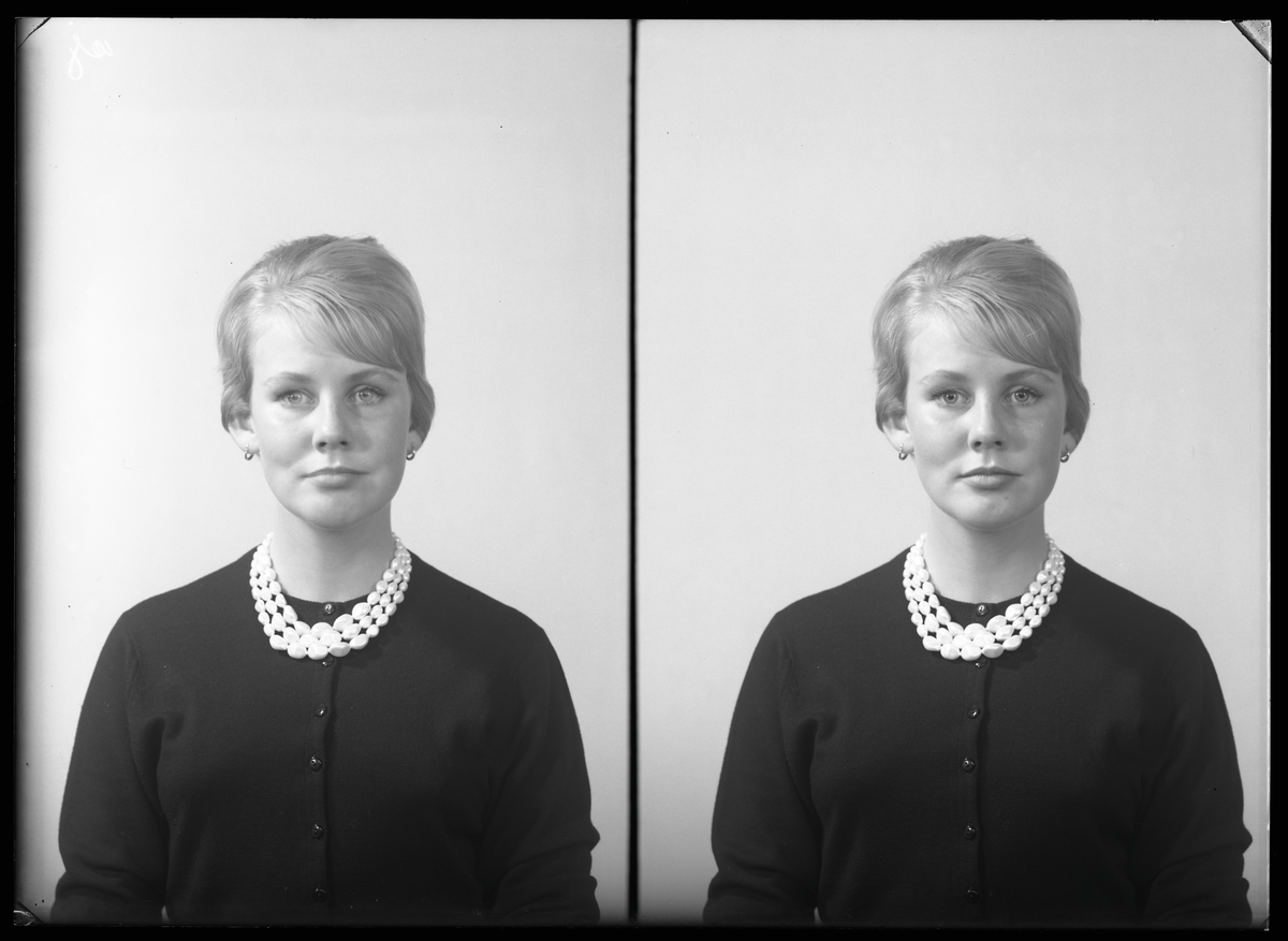 Kvinnoporträtt, pass, fröken Agneta Wetterberg, Mölntorp, Kolbäck.