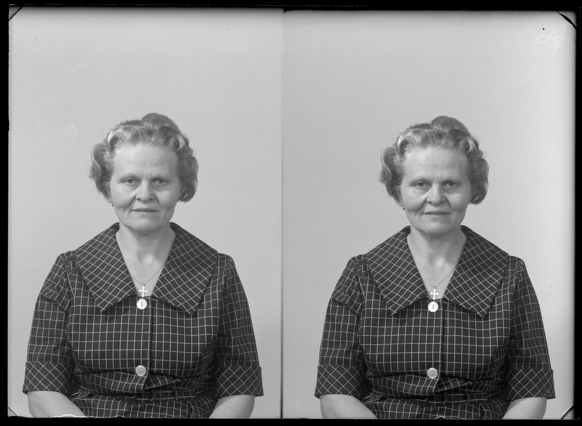 Kvinnoporträtt, pass, fru Piroska Csernak, Äggsjögatan 8 B, Kolbäck.