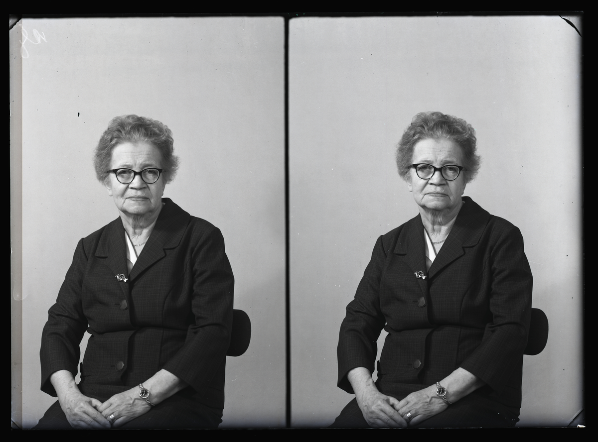 Kvinnoporträtt, pass, Fru Elsa Johansson, Stationsgatan 6 A, Kolbäck.