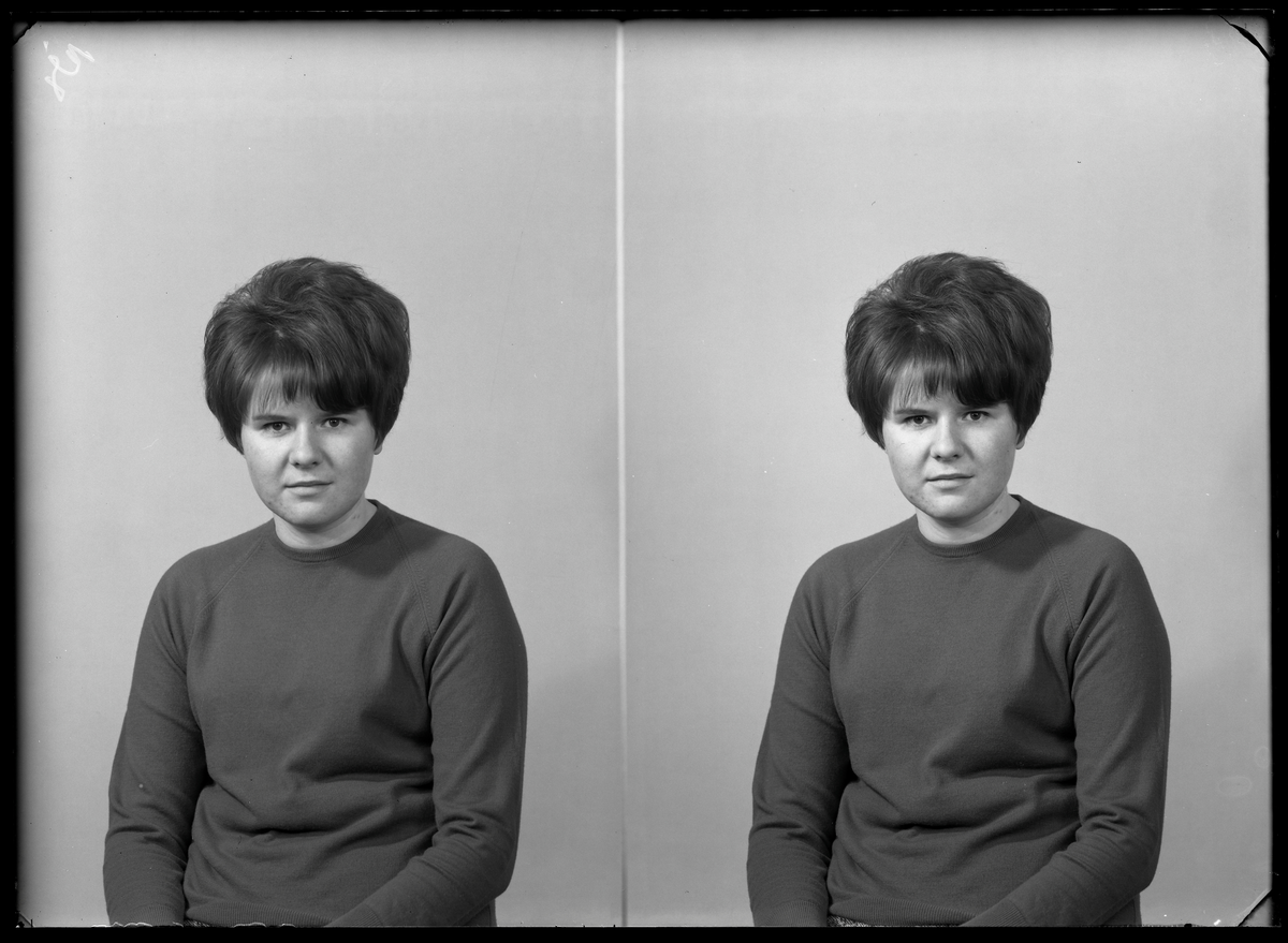 Kvinnoporträtt, körfoto. Inger Nilsson, Sofielund, Strömsholm.