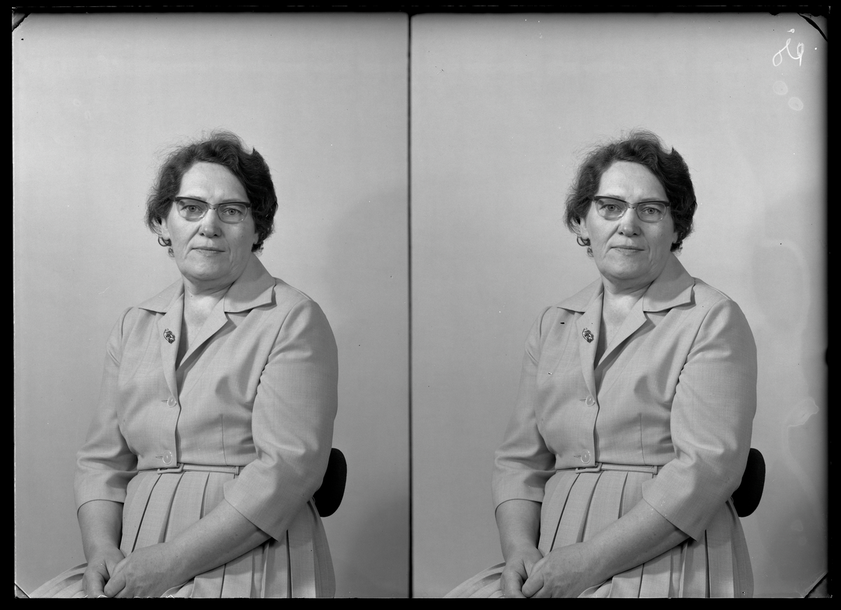 Kvinnoporträtt. Fru Maria Gustafsson, Idrottsvägen 28, Kolbäck.