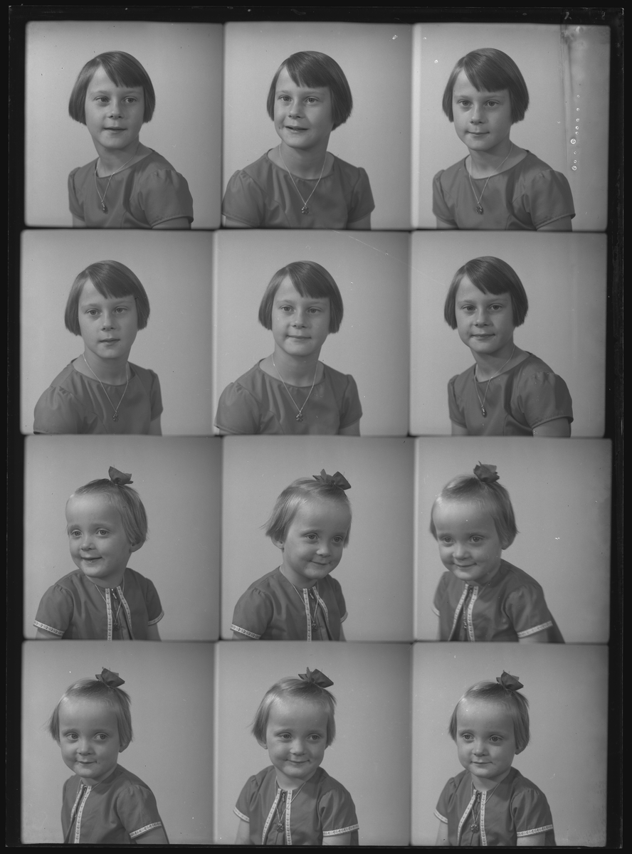 Porträtt, två barn (Berit och Lisbeth). Fru Berta Hedström. Vadställsgatan, Kolbäck. Ur Gustaf Åhmans samling.