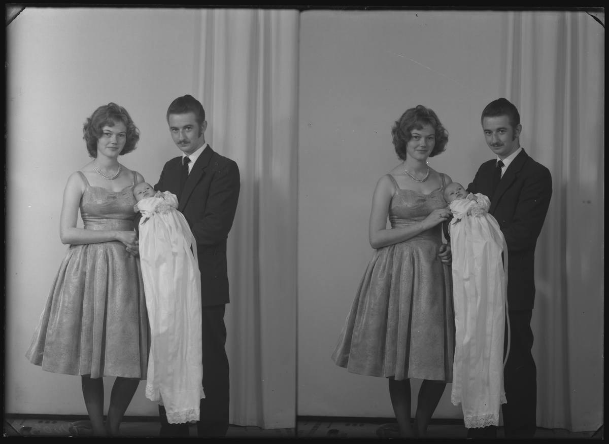 Grupporträtt, tre personer, dop. Allan Persson. Ringvägen 16, Kolbäck. Ur Gustaf Åhmans samling.