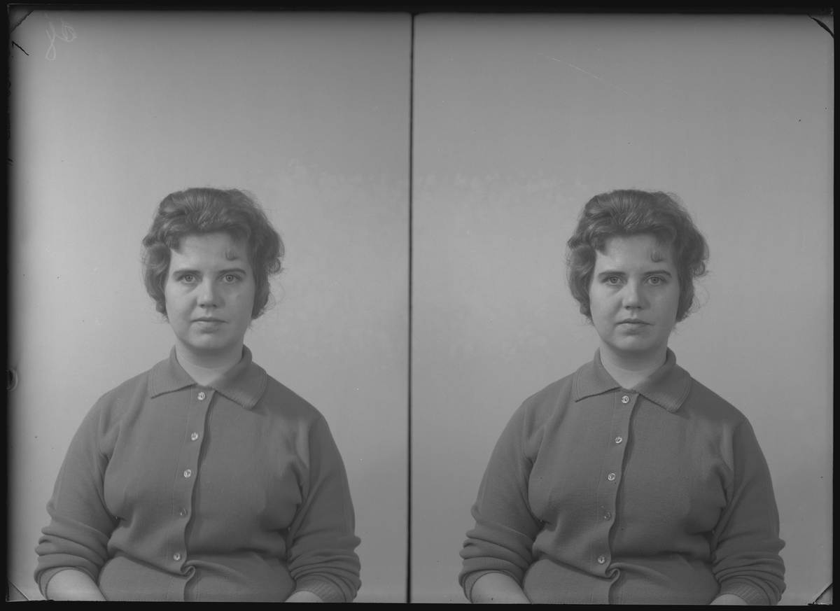Kvinnoporträtt, körfoto. Fröken Inger Sandin. Östra Åvägen 1, Kolbäck. Ur Gustaf Åhmans samling.