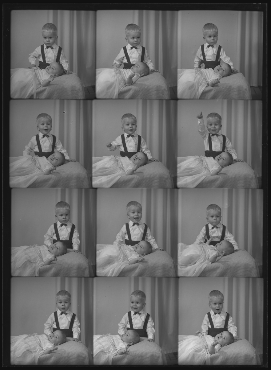 Grupporträtt, två barn, Per och Rolf. Fru Gärdnäs, Kolbäck. Ur Gustaf Åhmans samling.