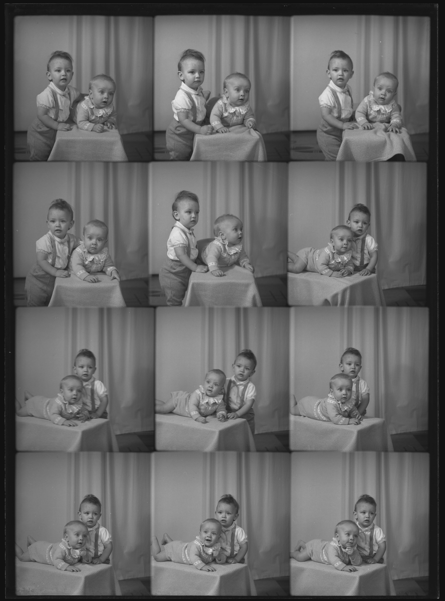 Grupporträtt, två barn. Fru Elsmarie Mattsson. Skomakarevägen 12C, Kolbäck. Ur Gustaf Åhmans samling.
