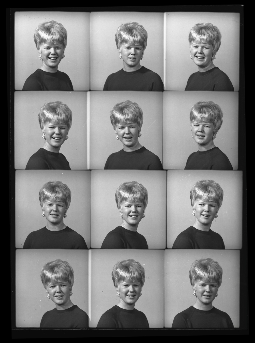 Porträtt, polyfoto. Mona Lisa Johansson, Margaretasalongen, Kolbäck. Ur Gustaf Åhmans samling.