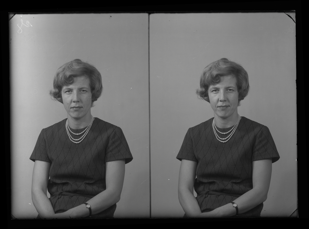 Kvinnoorträtt, körfoto. Fru Barbro Tomsen, Ofsta Kolbäck. Ur Gustaf Åhmans samling.