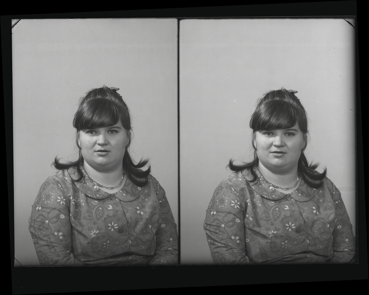 Kvinnoporträtt, passfoto. Saarela Orookki, Gjuterivägen 6, Kolbäck. Ur Gustaf Åhmans samling.