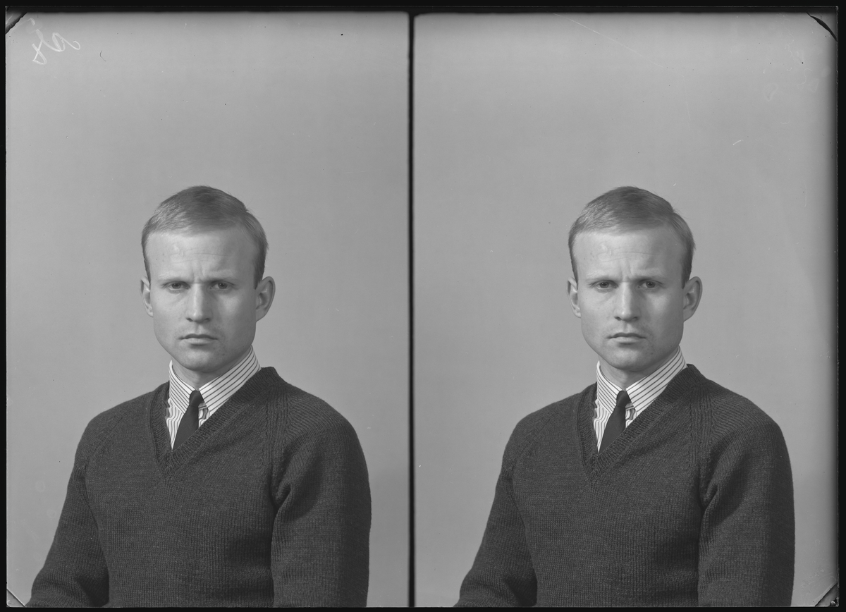 Mansporträtt, pass. Göte Normansson, Skomakarev. 12C, Kolbäck. Ur Gustaf Åhmans samling.