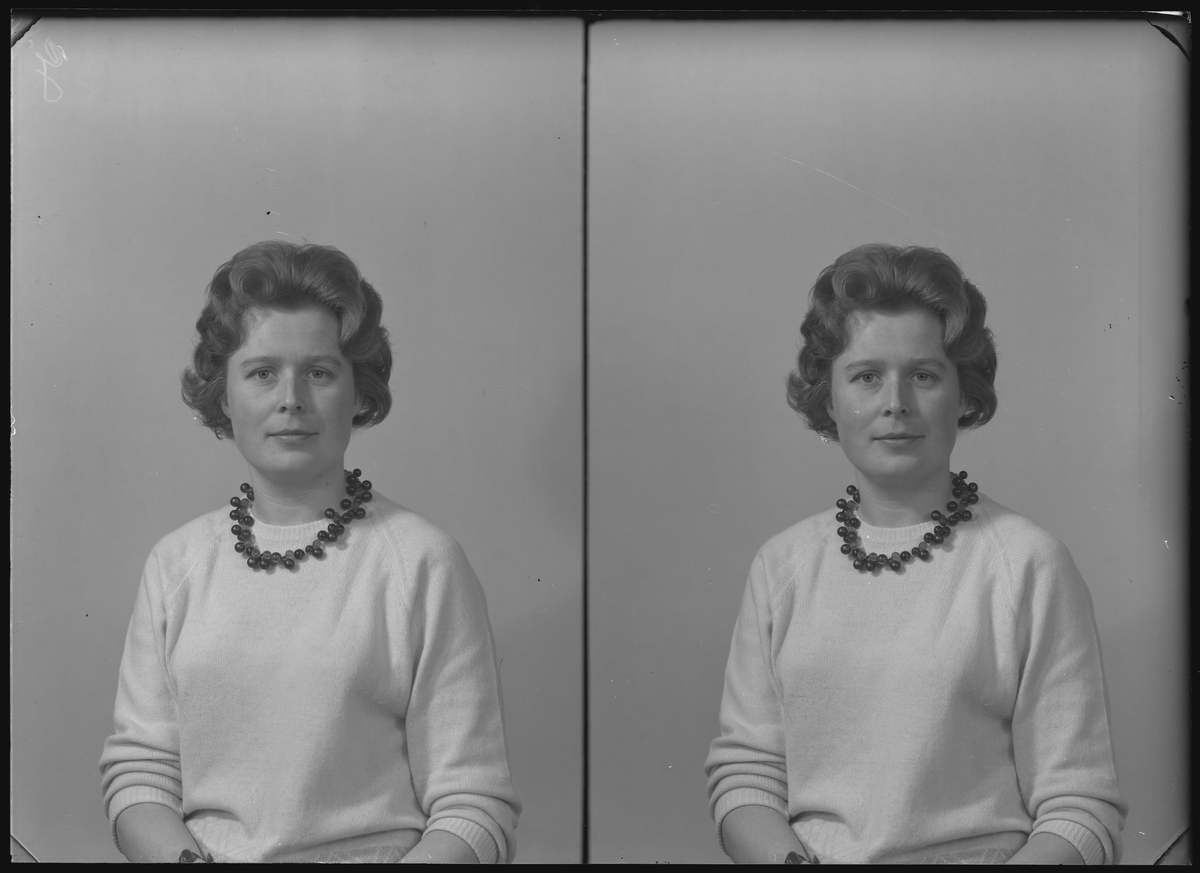 Kvinnoporträtt, pass. Fru Berit Öster, Säby Skola, Kolbäck. Ur Gustaf Åhmans samling.