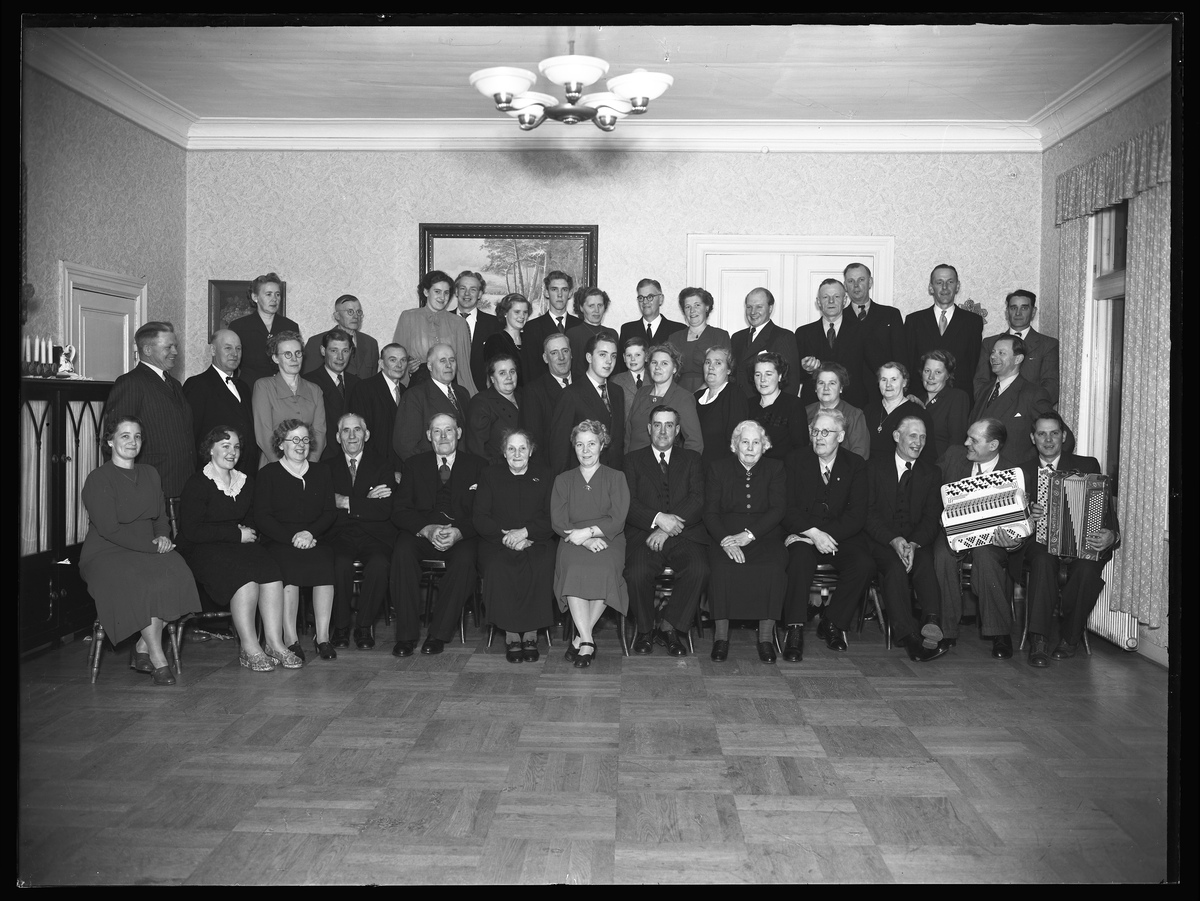 Grupporträtt, födelsedag 50 år. Oskar Eriksson, Box 828, Enköping.