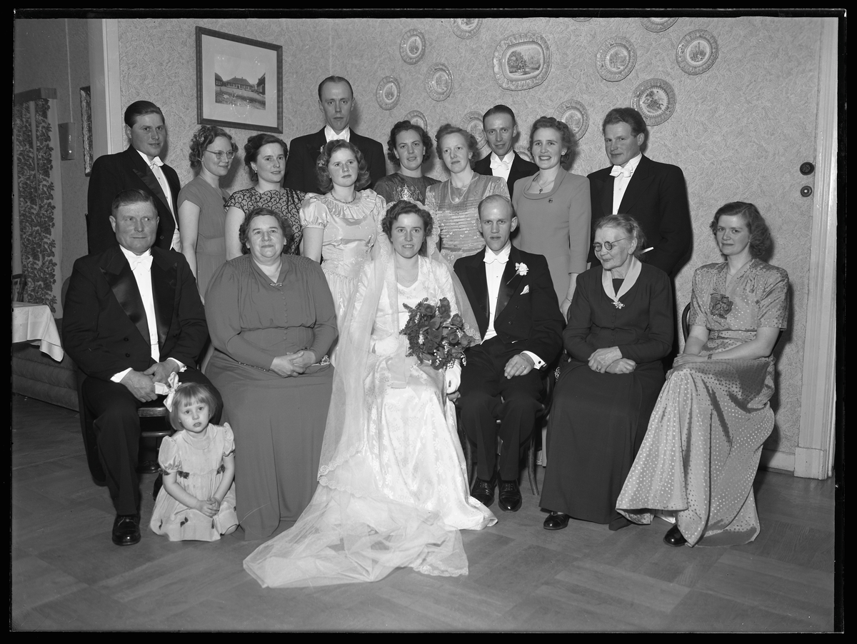 Grupporträtt. Brudpar med släktingar. Arthur Pettersson.