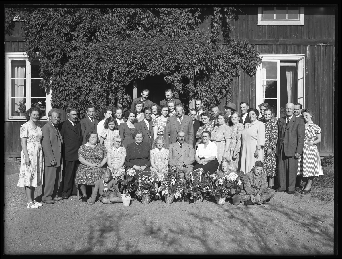 Grupporträtt, födelsedag 50 år. Olov Pettersson, Frössvi, Hallstahammar.