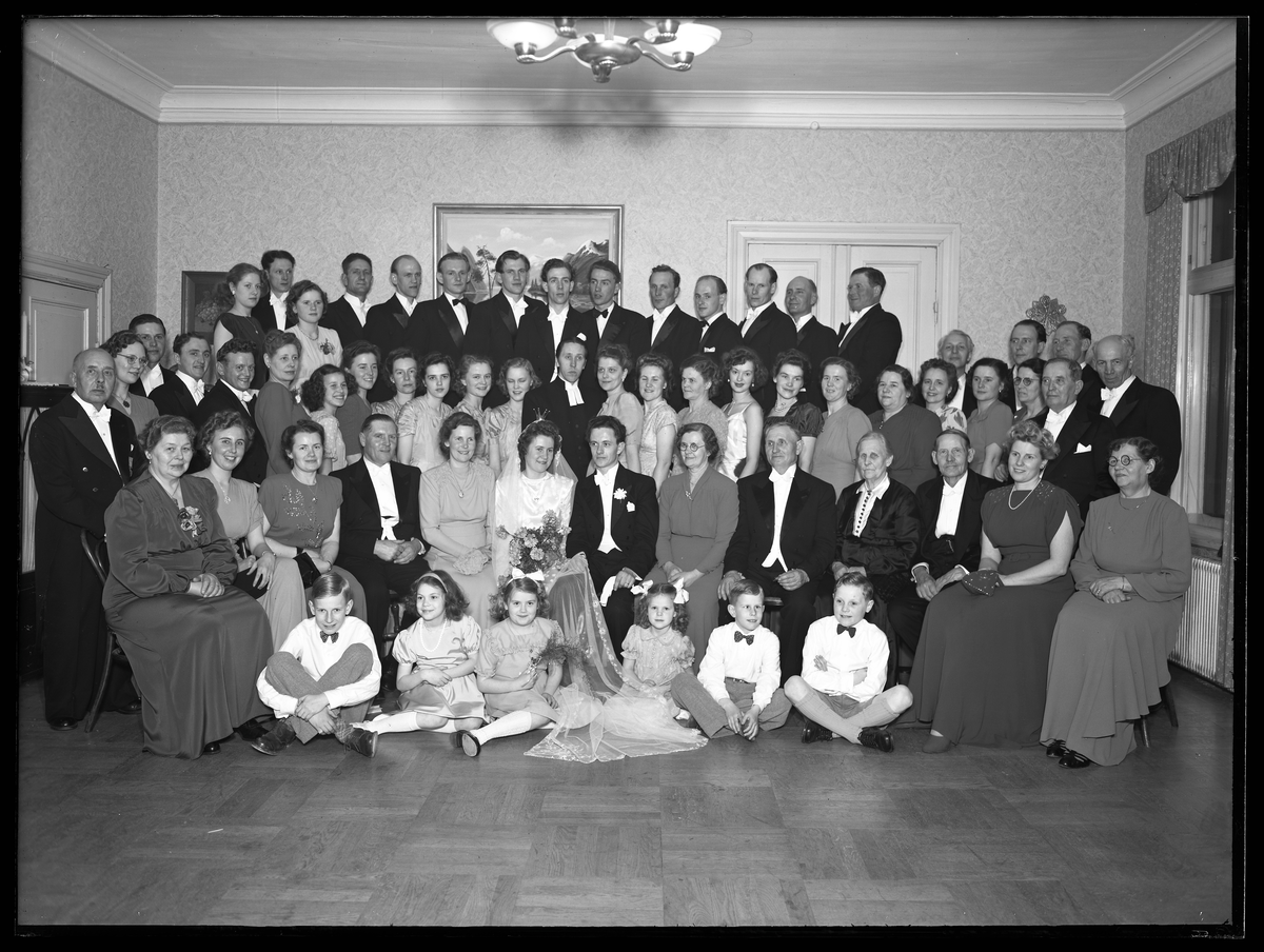 Grupporträtt, bröllop. Ivar Karlsson, Norrby, Berg, Hallstahammar.