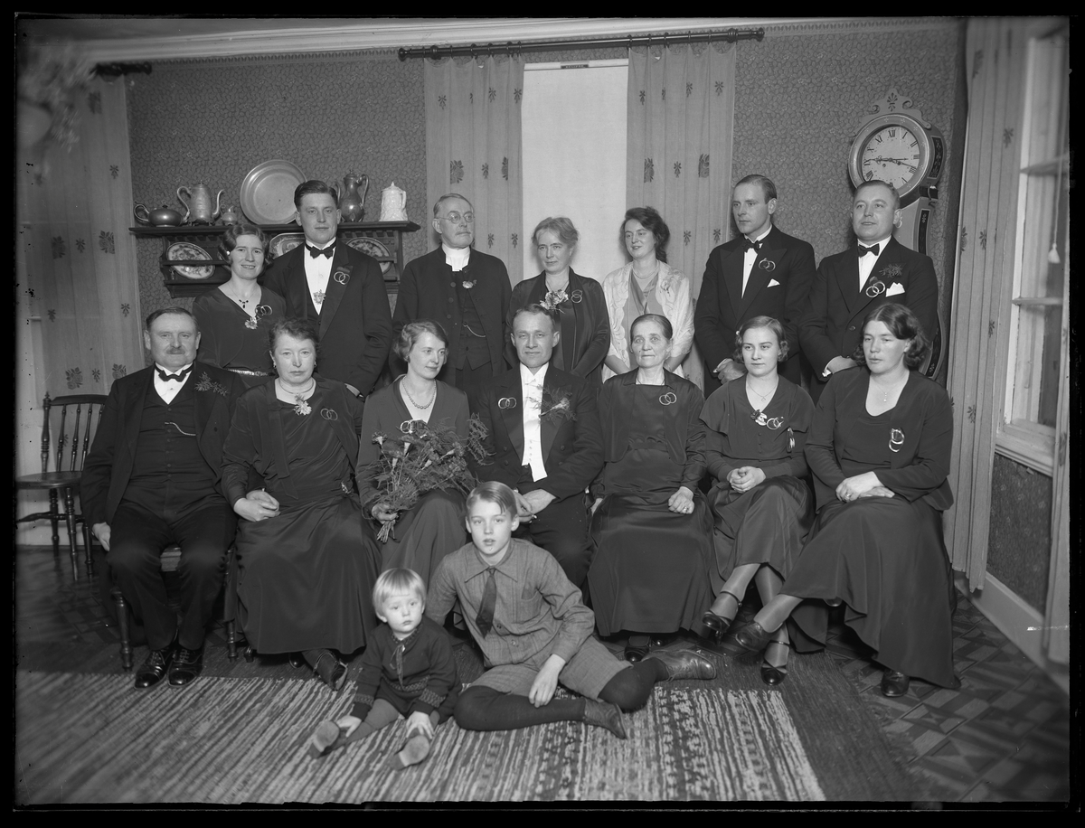 Grupporträtt, brudpar m.fl. Jägmästare Pettersson, Yllesta, Kolbäck.