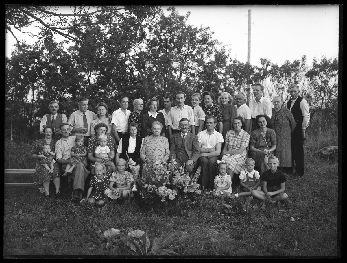 Grupporträtt, födelsedag 70 år. Fru Augusta Becker, Mölntorp, Kolbäck.