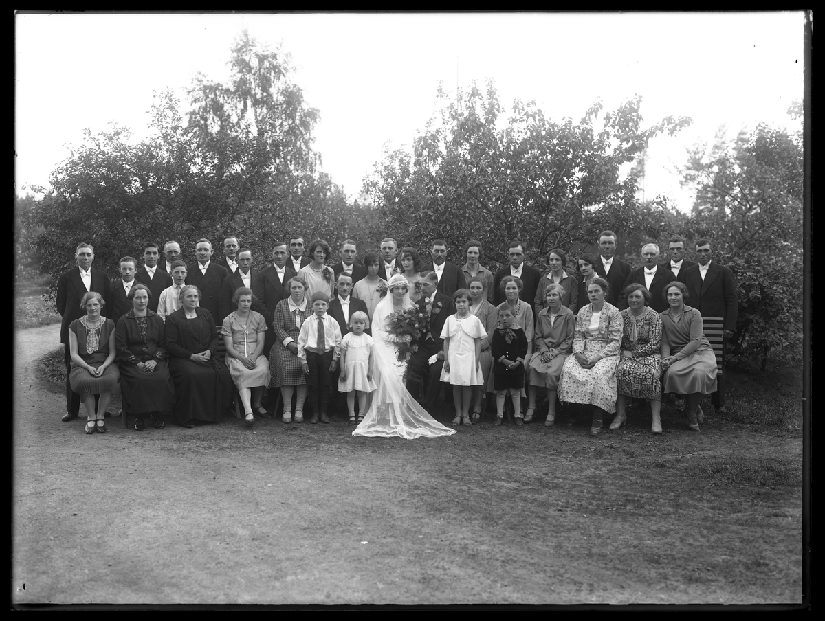 Grupporträtt, bröllop. Ivar Eriksson, Chaufför, Trångfors, Hallstahammar.