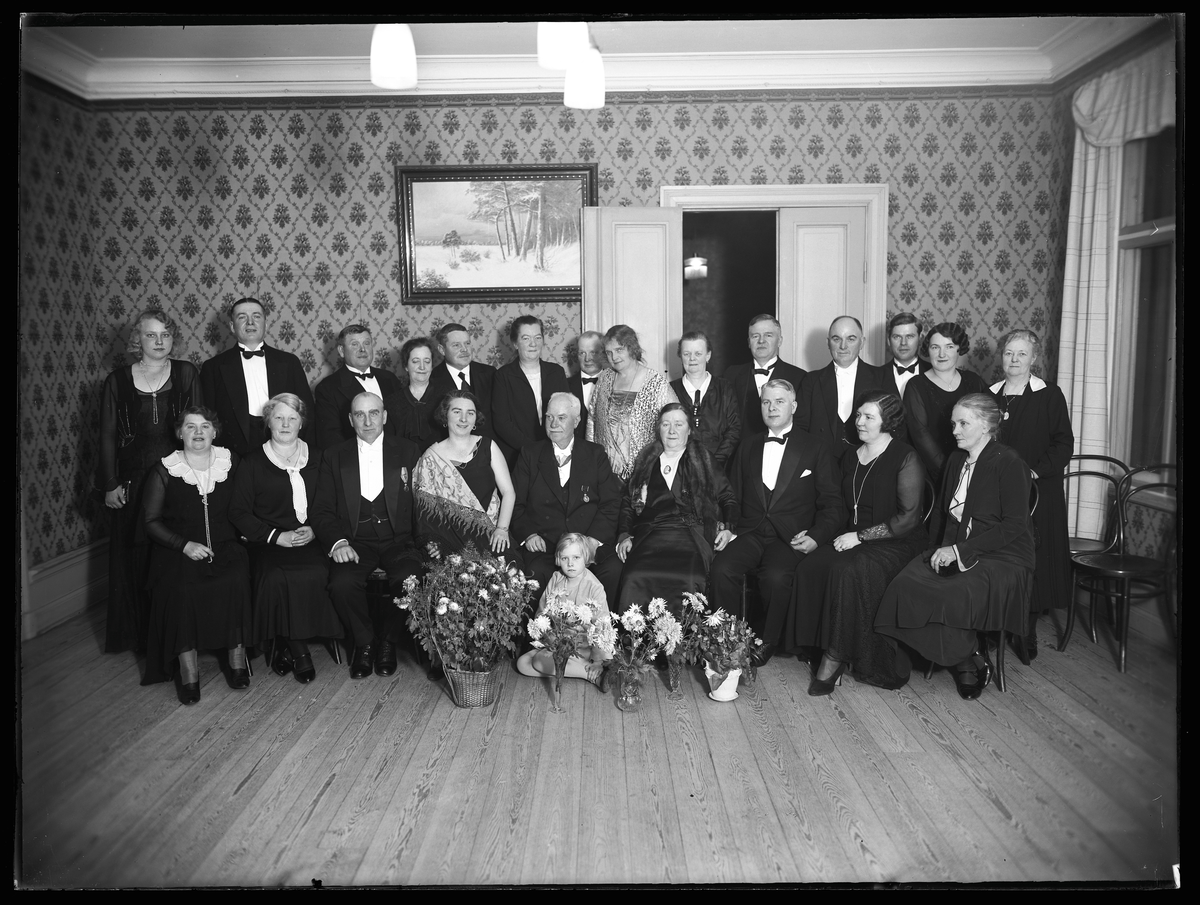 Grupporträtt, födelsedag 70 år. Lindberg, Östergården, Hallstahammar.