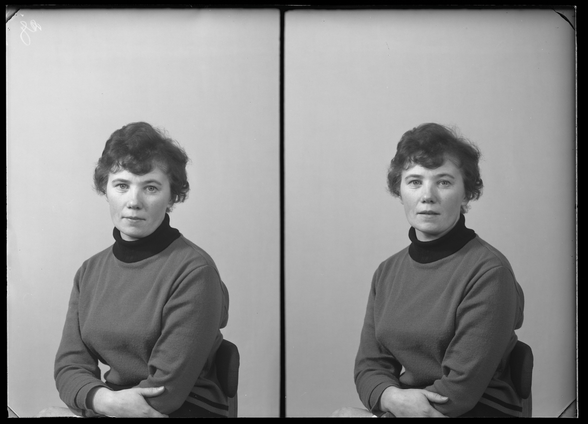 Kvinnoporträtt, körfoto. Fru Inga Lundin, Äggsjögatan 4A, Kolbäck.