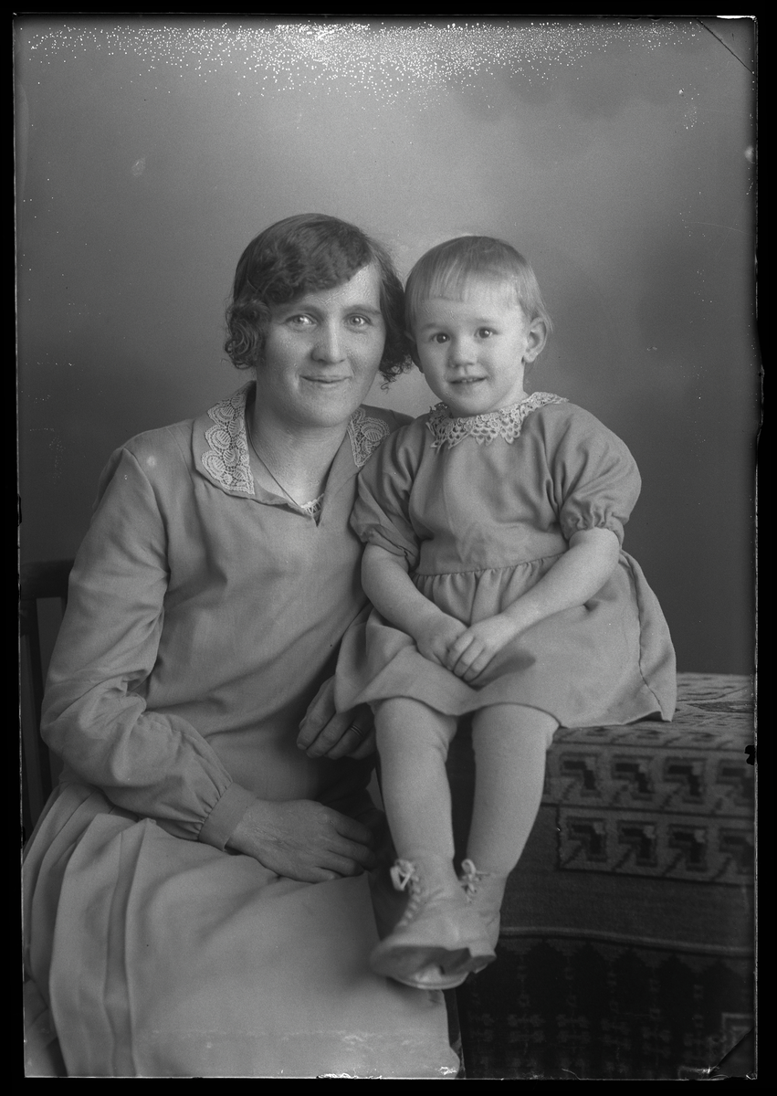 Grupporträtt, kvinna och barn. Fru Selma Karlsson, Bolunda, Kolbäck.