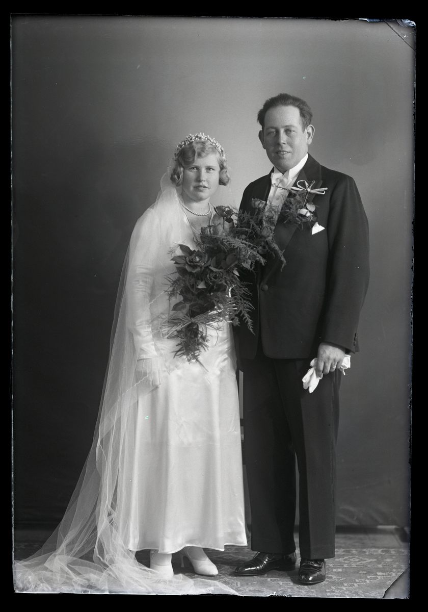 Titel: Brudpar. Allan Andersson, Agnesdal, Hallstahammar. Ur Gustaf Åhmans samling.