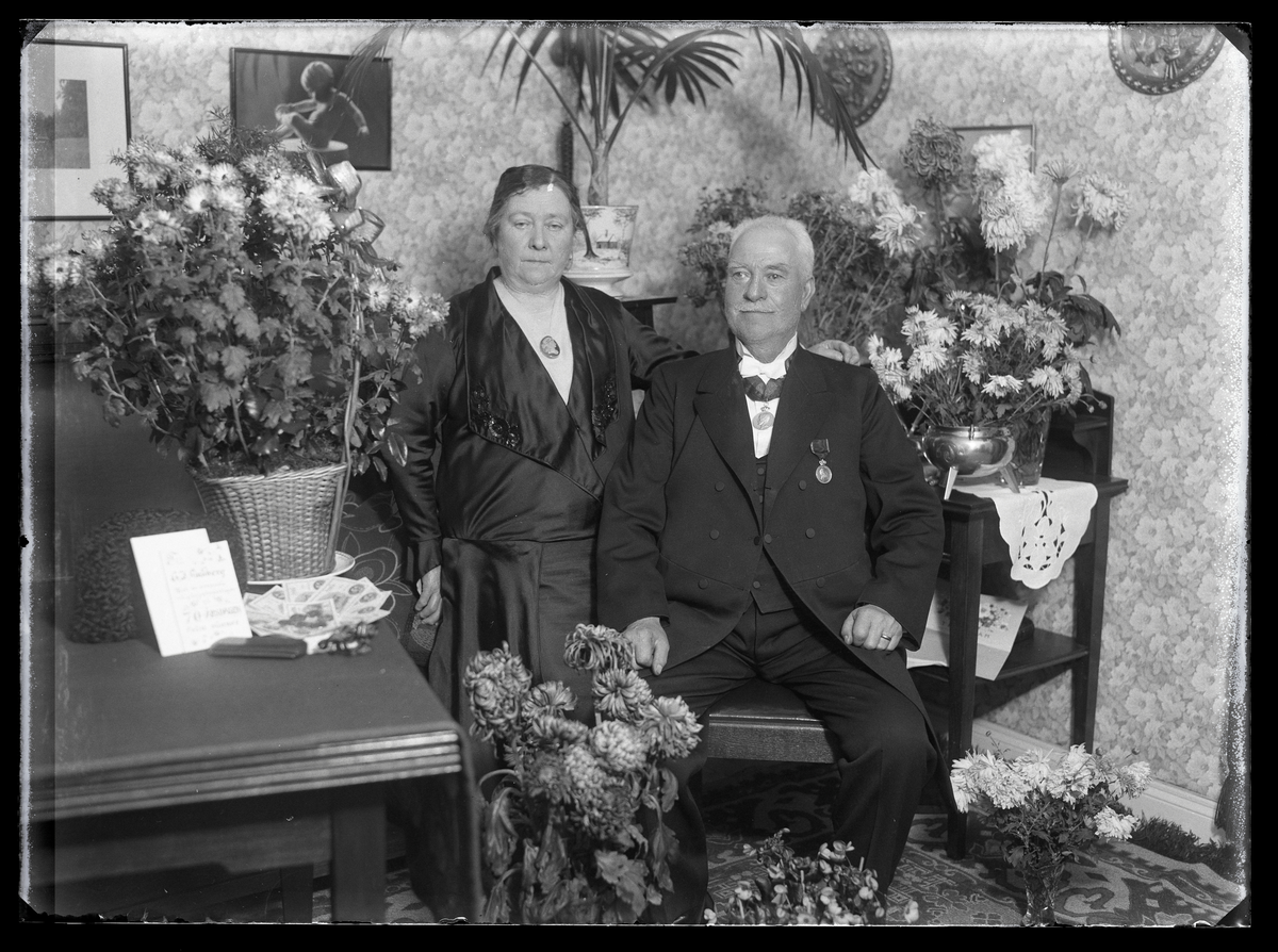 Grupporträtt, 70-års foto. Lindberg, Östergården, Hallstahammar.