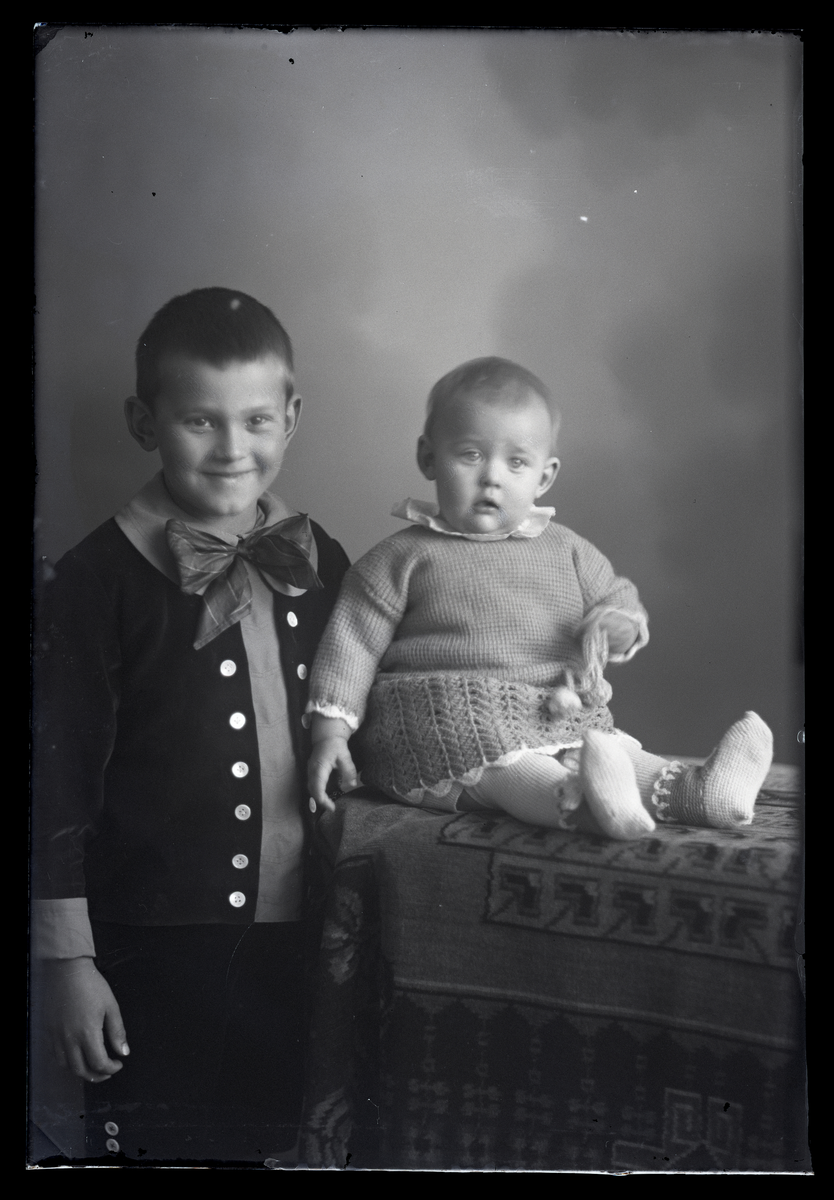 Grupporträtt, två barn. G. Vallin, Amsta, Kolbäck.