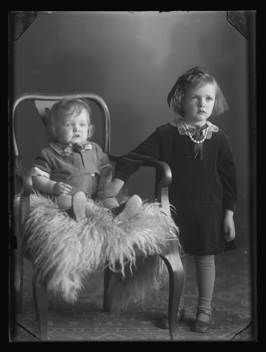 Grupporträtt, två barn. Axel Johansson, Norrsylta, Munktorp.
