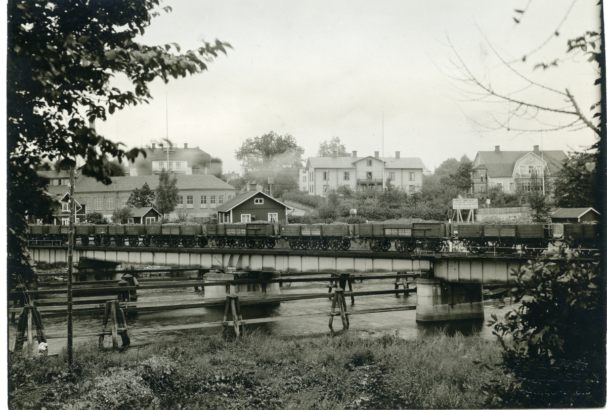 Järnvägsbron samt kvarteren Drotten, Gjutaren och Rex i bakgrunden.