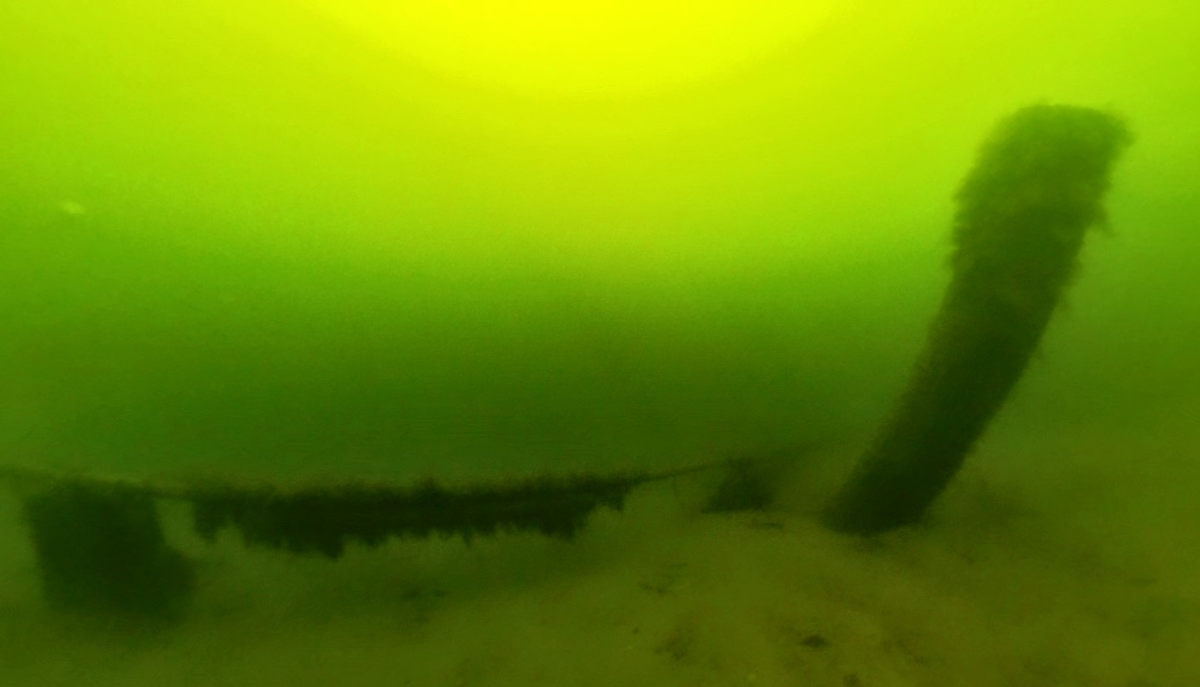 Det stående plaströret i anslutning till metallkonstruktionen vänster om den sjökabel som är markerat på sjökortet.