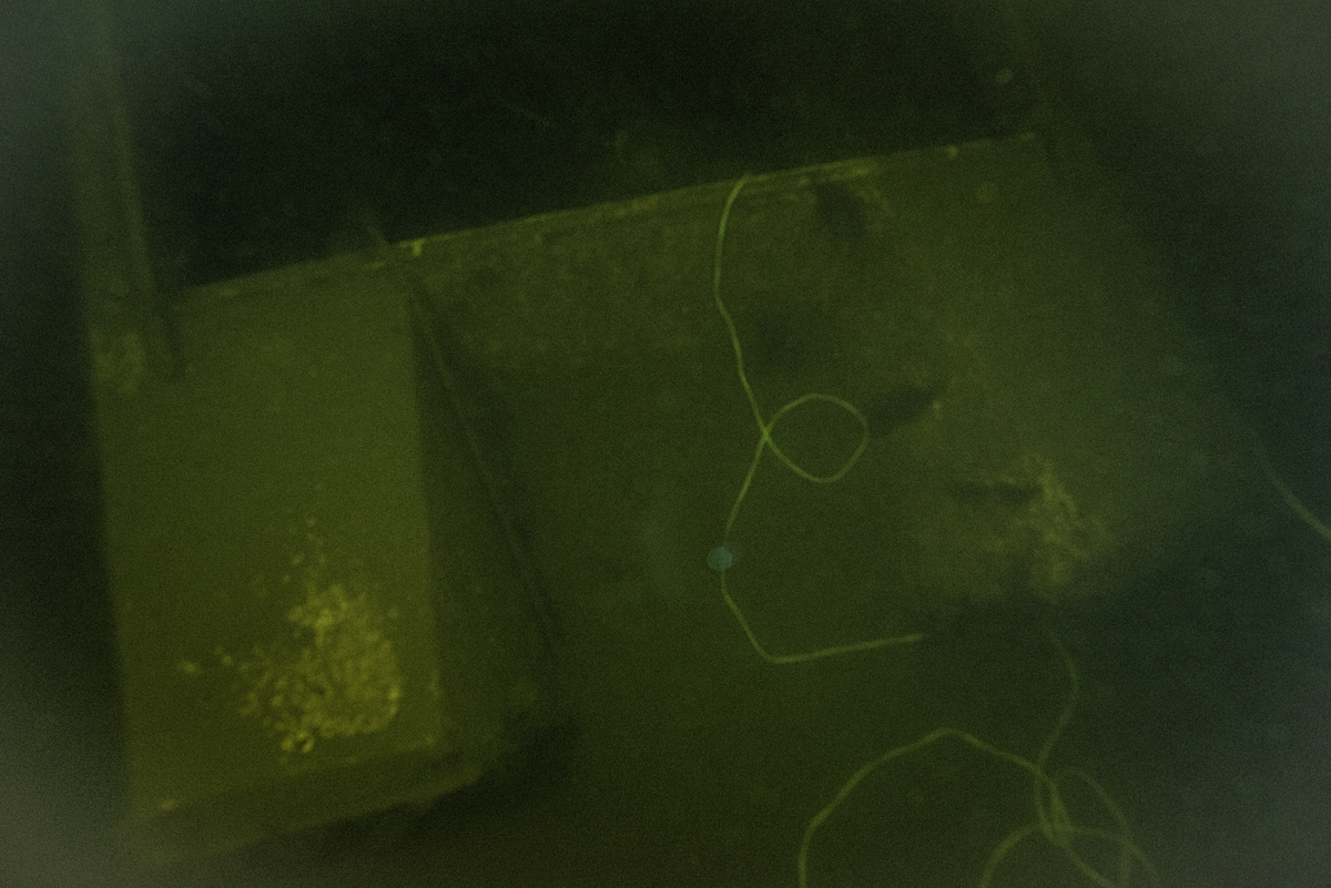Akterpartiet av fartygslämningen, där man tydligt kan se en motorbrunn.