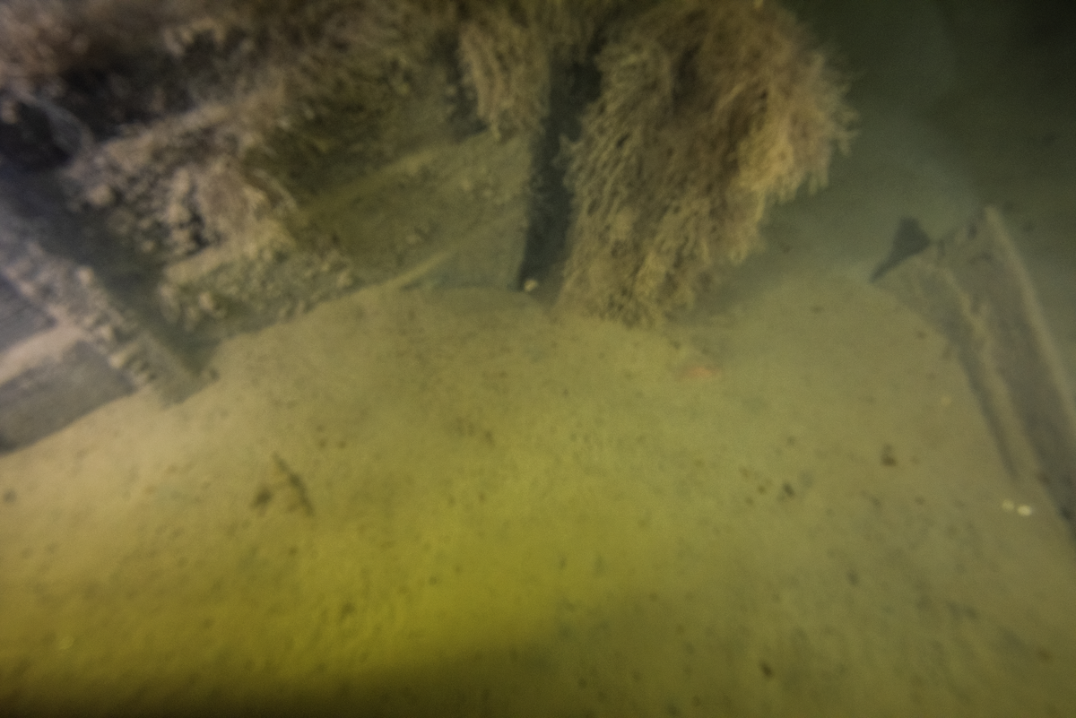 Den förliga delen av fartygslämningen L2013:7647 som sticker ur sedimenten cirka 30 centimeter