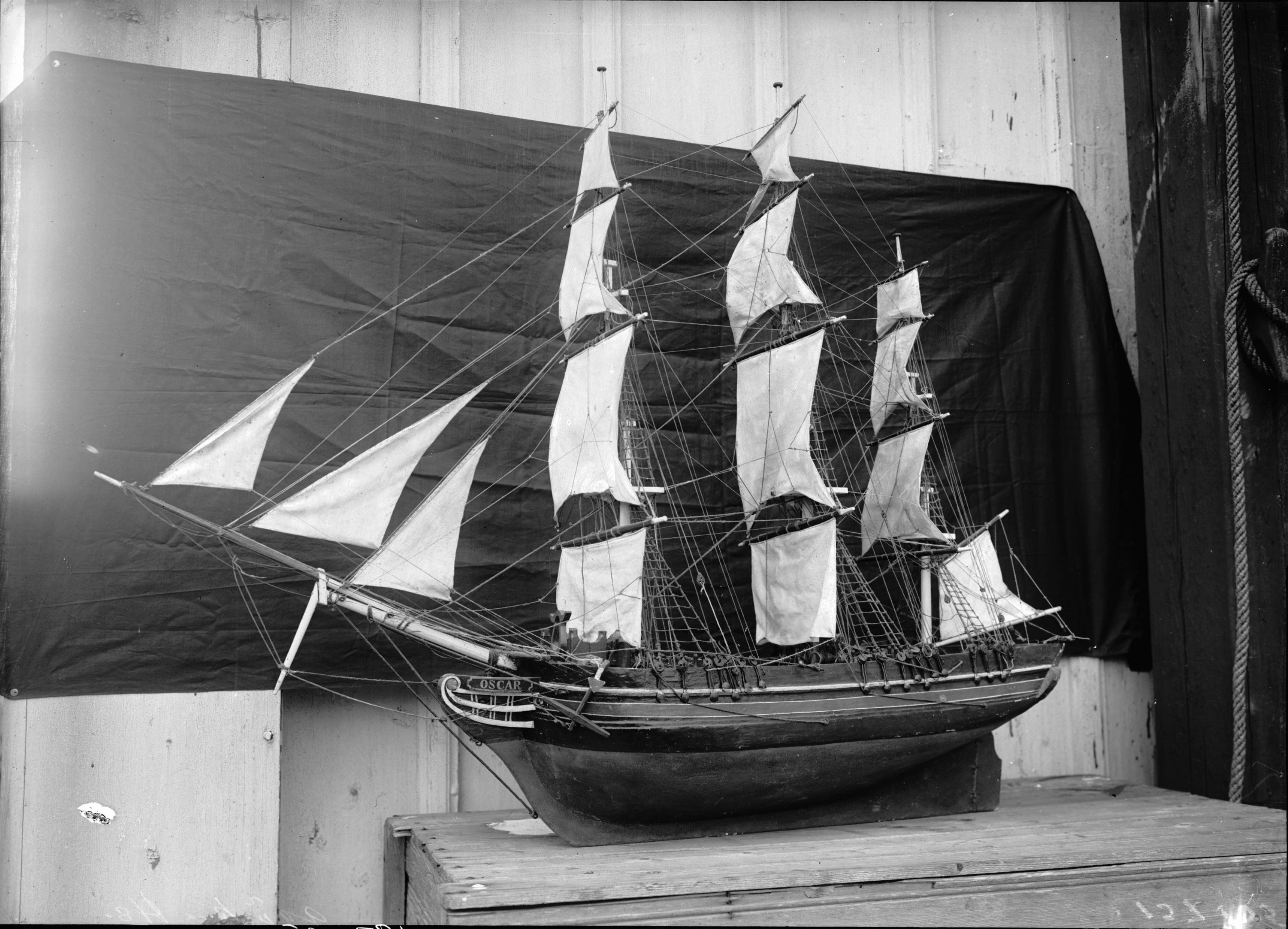 Votivskepp, fullt riggat, tre master. Från 1800-talet.