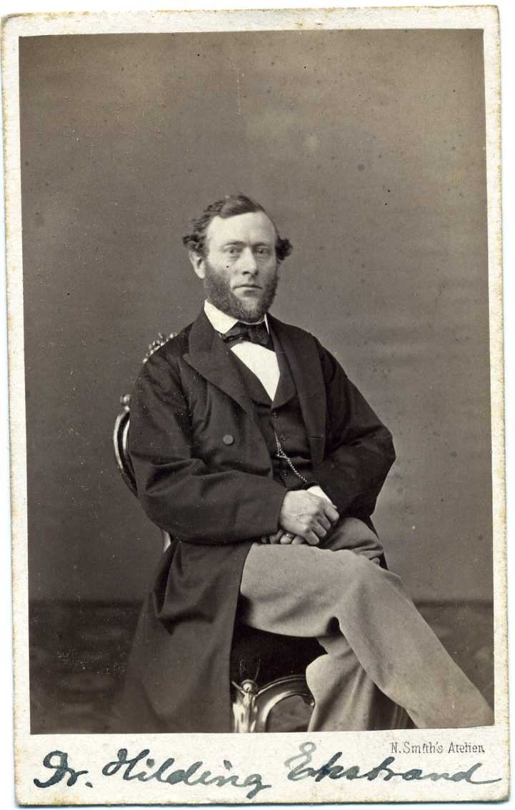 Porträtt av en man med stora polisonger, han sitter på en stol.