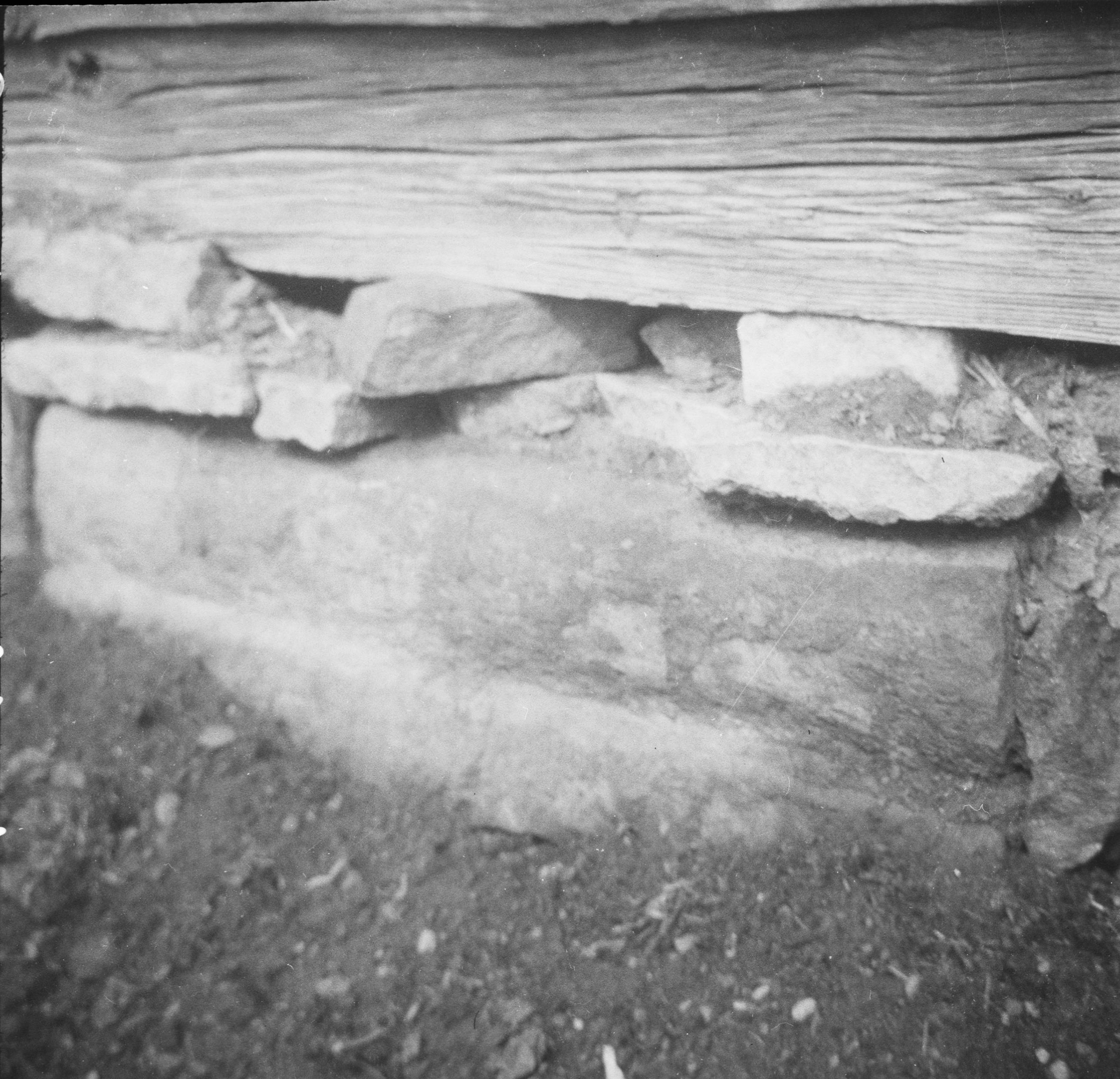 Huggen profilerad sandsten vid Ödekyrka gård, troligen härstammande från Bolum rivna kyrka.