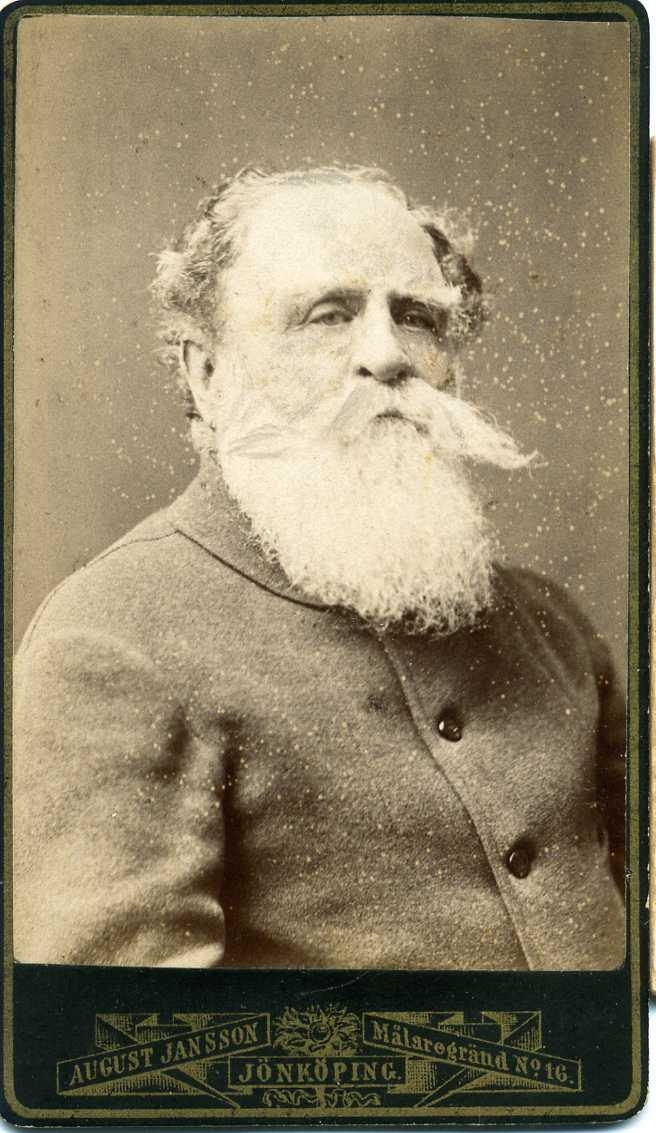 Porträtt av en äldre man med stort vitt skägg, bröstbild.