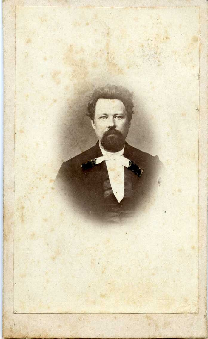 Porträtt av en man med mörkt skägg, bröstbild i oval.