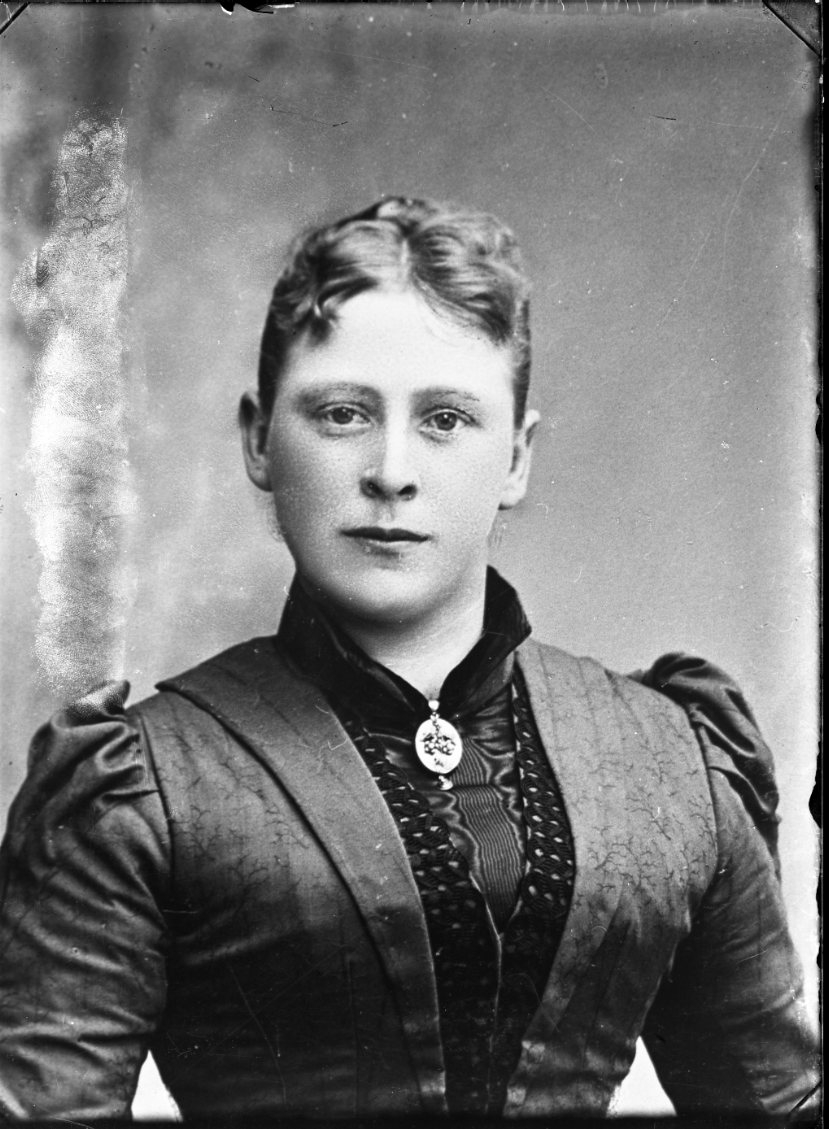 Porträtt av okänd ung kvinna med halssmycke, bröstbild.