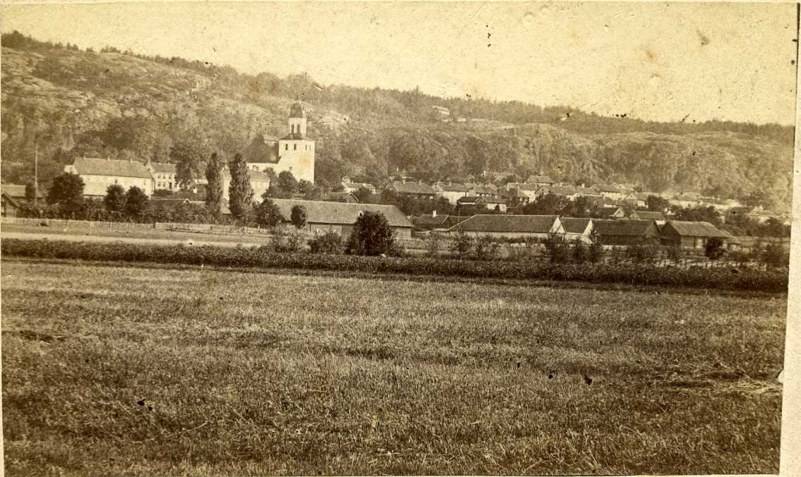 Bild över Gränna från hamnområdet vid gärden upp mot kyrkan.