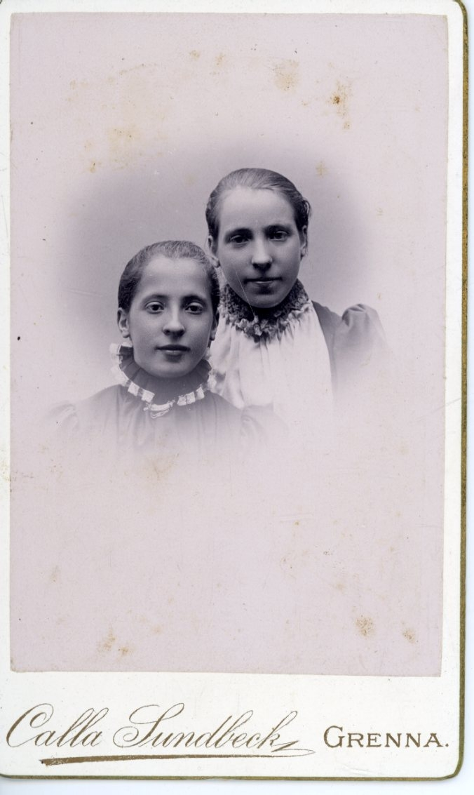 Porträtt av två okänd flickor intill varandra, bröstbild.