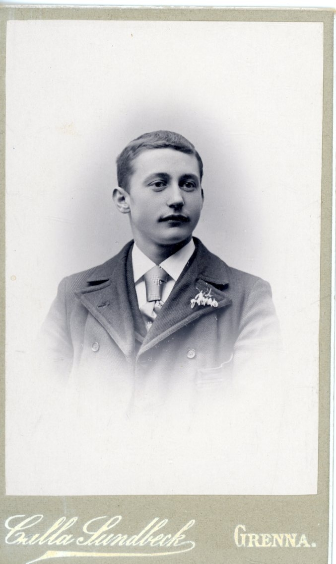 Porträtt av en okänd pojke med blommor på kavajslaget, bröstbild.