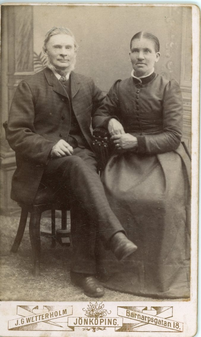 Porträtt av en okänd man och kvinna som sitter intill varandra.