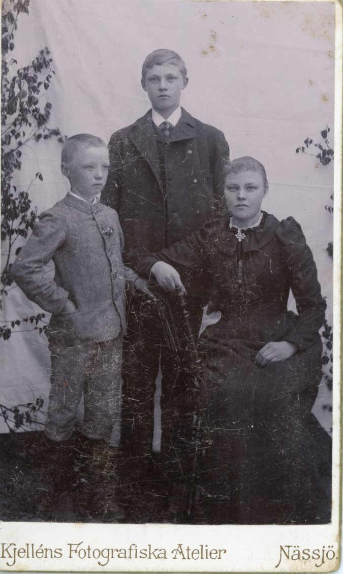 Porträtt av okänd flicka och två pojkar, syskon?